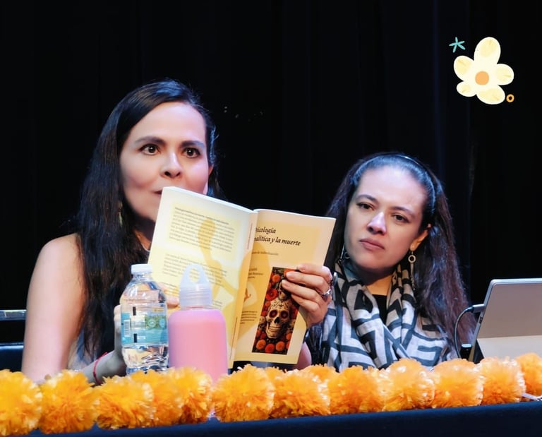 Gloria Martínez (Directora Editorial) y Fanny Poblete (Co-Directora y Directora de la Sede México del Instituto Eleusis) presentando el libro "PSICOLOGÍA ANALÍTICA Y LA MUERTE: Caminos de individuación".