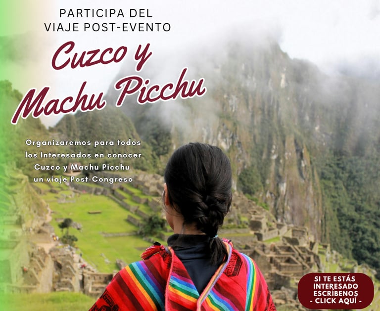 Al finalizar el Encuentro organizaremos un viaje a la ciudad de Cuzco, Machu Picchu y Valle Sagrado de los Inkas. El Viaje está pensado realizarse durante 5 días, saliendo de la ciudad de Lima. Esta actividad no está incluida en el pago del evento y posee cupos limitados.