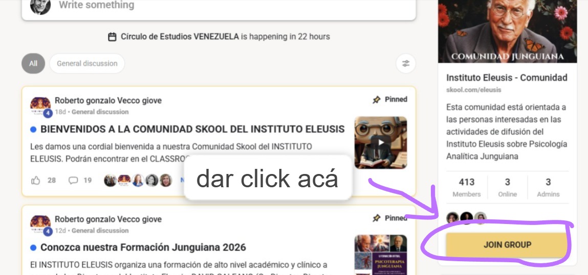 Poner JOIN GROUP Sino ponen esto habrán creado su perfil en SKOOL, pero no se habrán agregado a la comunidad de SKOOL ELEUSIS