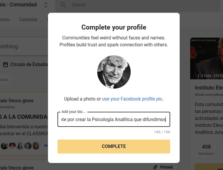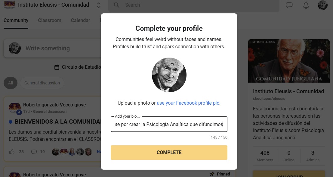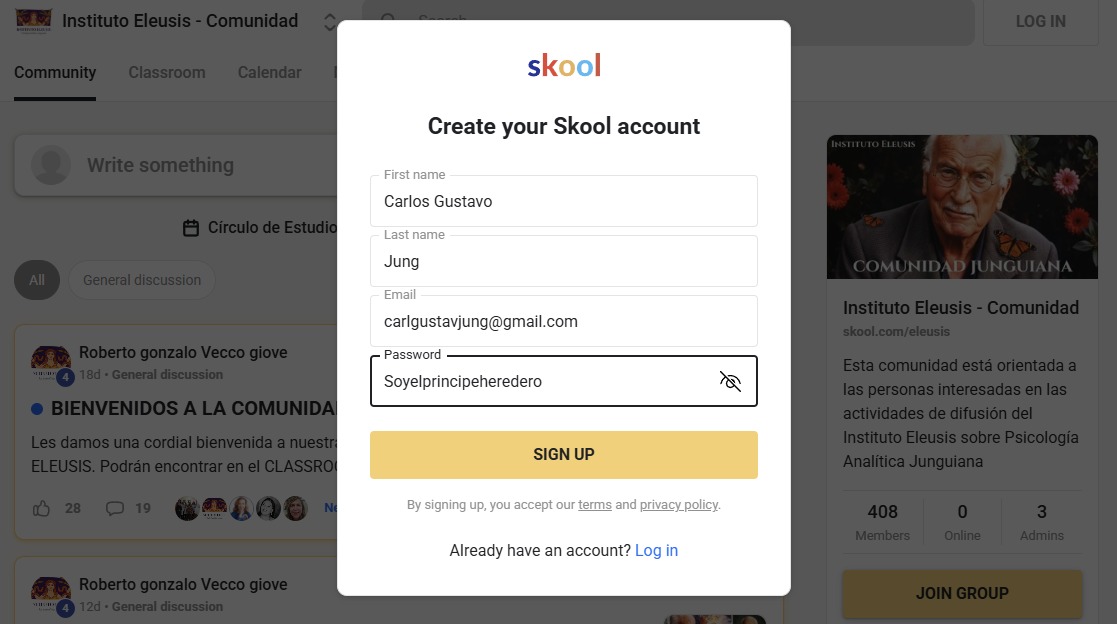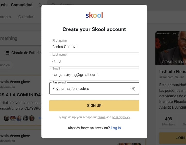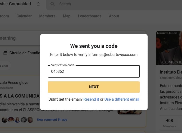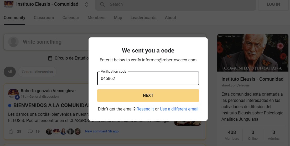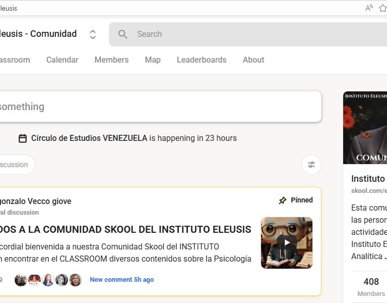 Ya deberías poder acceder a la Comunidad Skool de Eleusis: