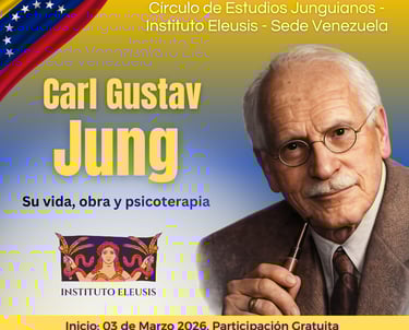 En este ciclo del Círculo de Estudios del Instituto Eleusis - Sede Venezuela nos adentraremos a la Vida, Obra y Psicoterapia de Carl Gustav Jung, basados en el libro de Pilar Quiroga. Haremos un recorrido por las principales etapas e ideas del desarrollo de Jung: Psiquiátrica, Psicoanalítica, Punto de Inflexión, Madurez y Últimos desarrollos.